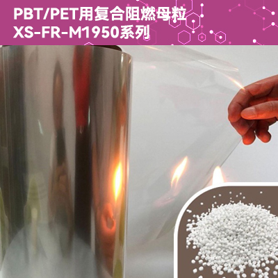 XS-FR-M1950是以聚 酯树脂为载体的无卤功能母粒,主要用于PET纤维和薄膜产品,赋子PET制品高效稳 定的阻燃特性,不影响制品的透明性。